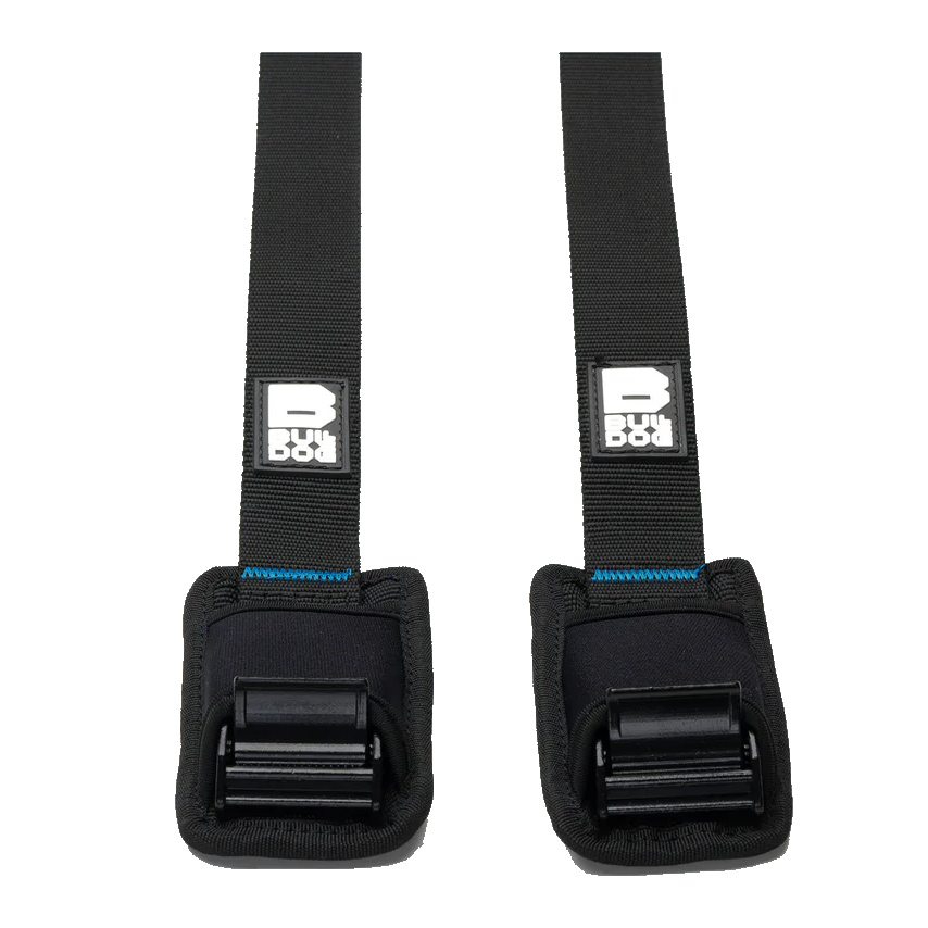Bulldog Roof Rack Straps are heavy-duty straps designed for transporting your surfboard or other watercraft to the beach on your car roof racks. These straps are sold in sets of two 3M straps with cam buckles for secure tightening and a protective neoprene buckle housing.
