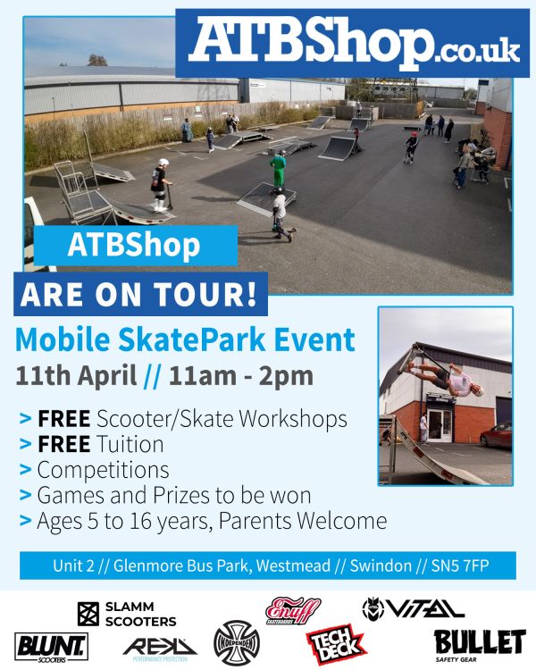 We are bringing our Mobile Skate Park to the shop for a special event Saturday 11th April. Come along to the shop and ride the mobile park for Free! Get some tips and tuition and also borrow scooters/skateboards to test ride if you haven’t your own already. The skate park is rideable 11am – 2pm…