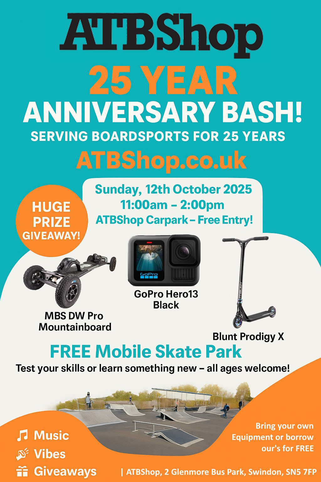 And for everyone attending, they’ll be an opportunity to win some really cool prizes in our free to enter raffle!!! We are talking a new top of the range GoPro HERO13 Black, the latest high end MBS DW3 Pro Mountain board, top end Blunt Prodigy X Scooter.