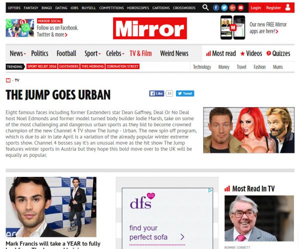 Channel 4 TV Show The Jump goes Urban