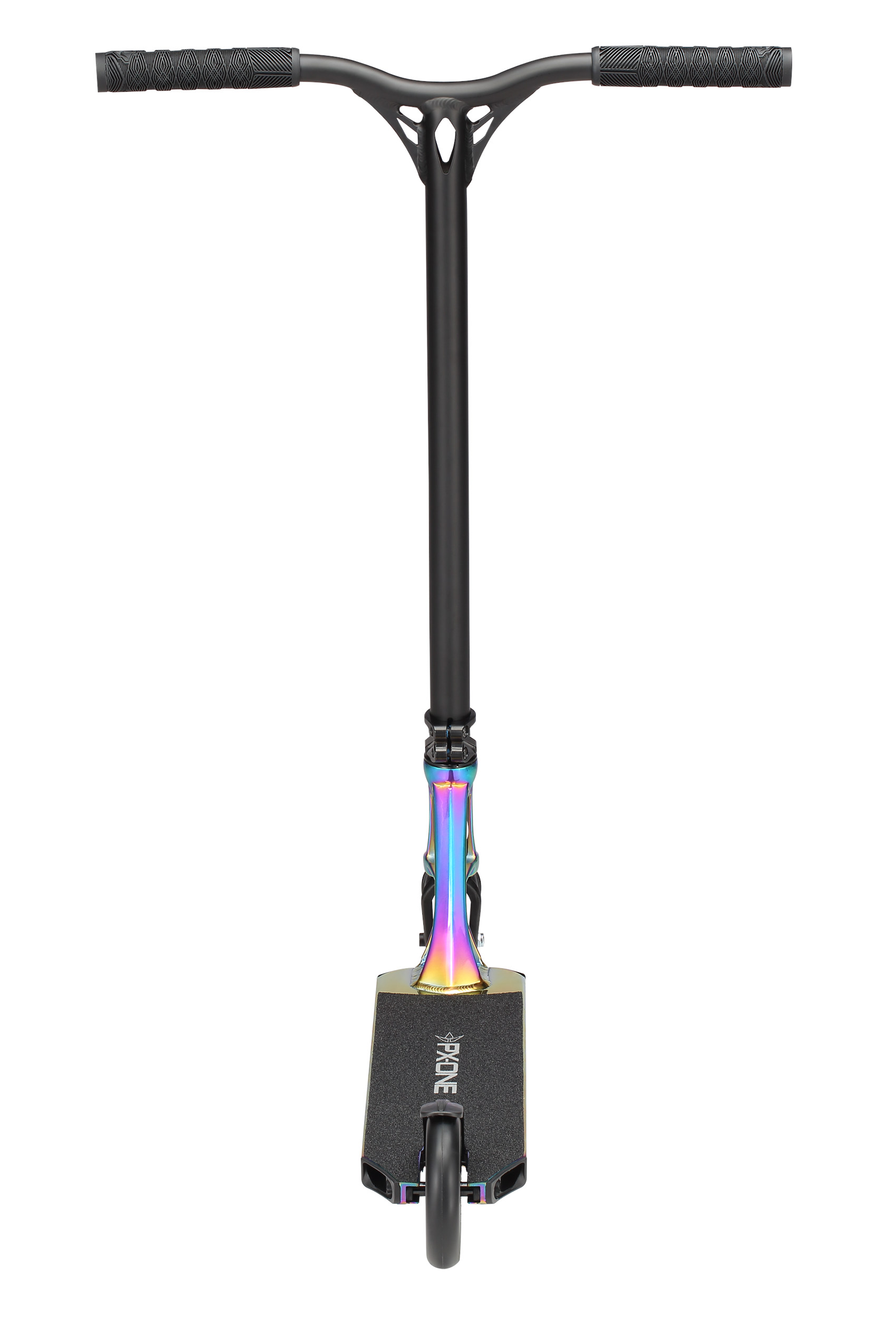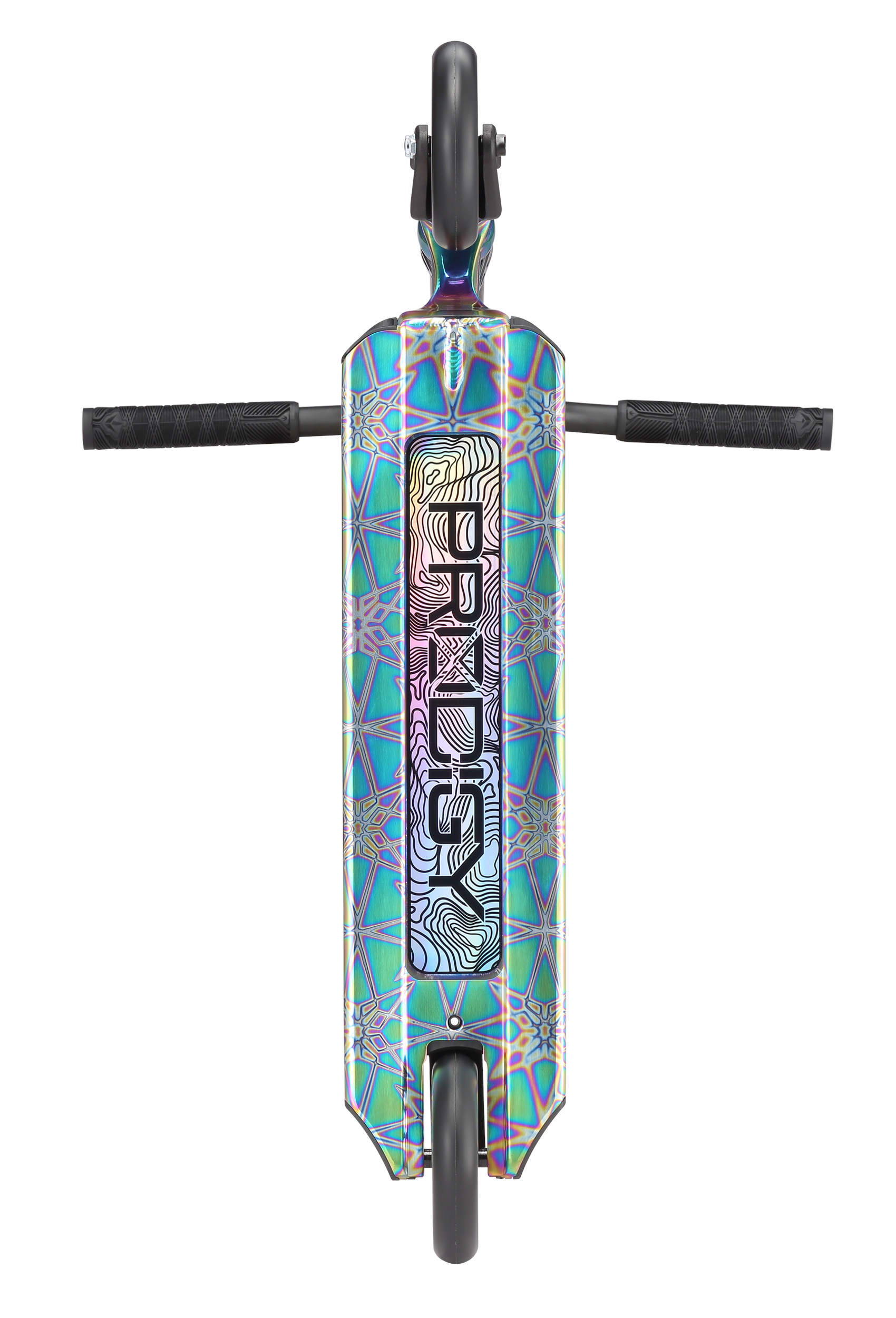 The Blunt Prodigy X One Oil Slick Stunt Scooter is the eleventh version of the prodigy line which has been developed over 12 years of production. The Oil Slick is the colour changing version deck from the range with oil slick patterned deck black bars, fork, clamp and wheels the Oil Slick is always one of the most popular colours in the Prodigy series. The Prodigy X One edition of the scooter is a tweak from the Prodigy X with some strength modifications to the deck extrusion with thicker wall thicknesses. The headtube has been modified to give more strength and contact to the deck with new anchor weld underneath so it can take anything thrown at it!