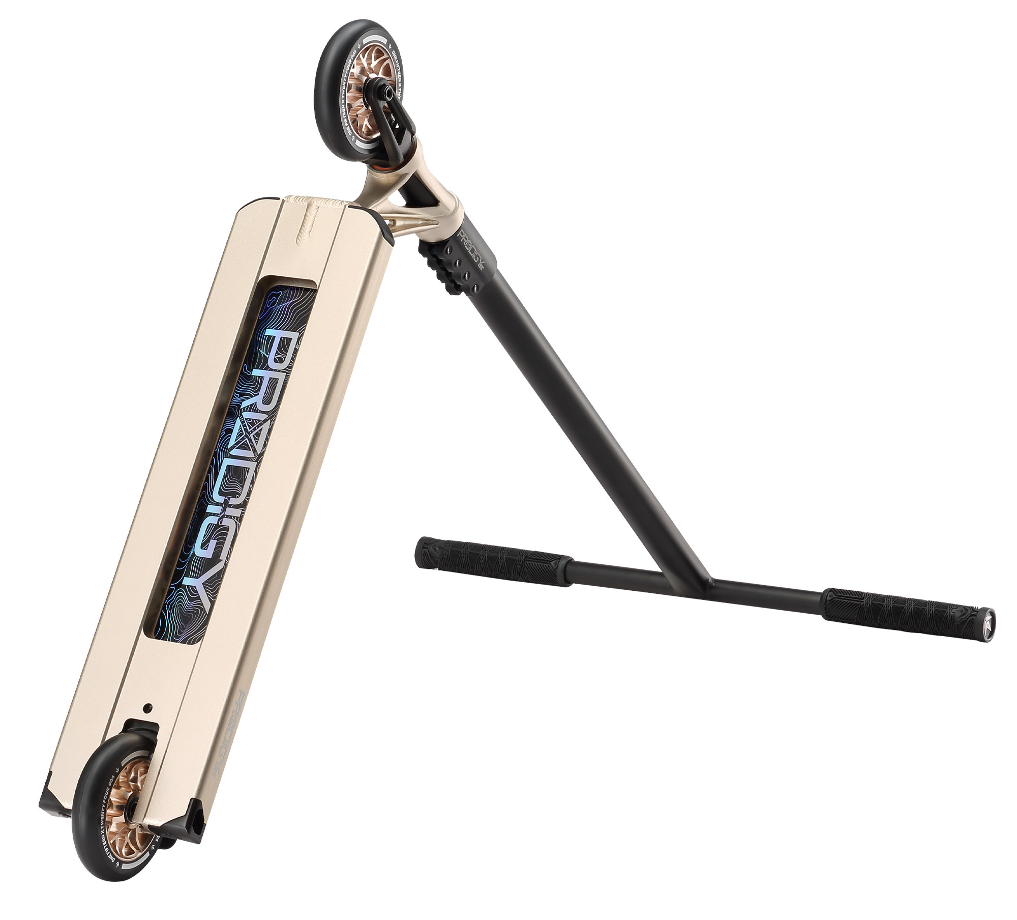 The rest of the Blunt Prodigy X Scooter has kept the same as the X with the Fully Butted T Bars which have varied internal wall thickness to keep the strength and drastically reduce the weight. Omen SCS has stayed for strength and a much more street compression system. The low stack headset also streamlines and simplifies the compression and bearing interface.