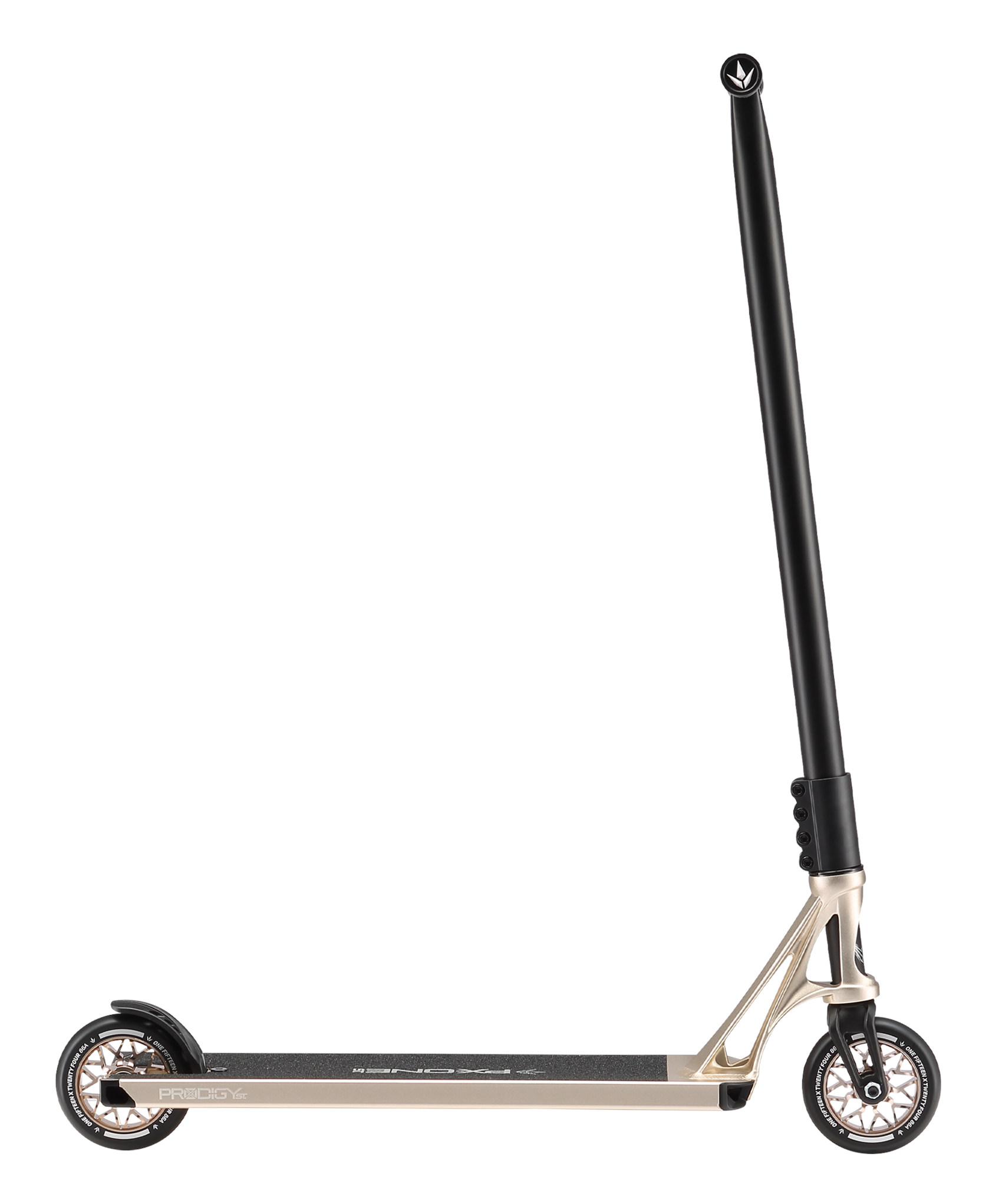 The Blunt Prodigy X One Street Ivory Stunt Scooter is the eleventh version of the prodigy line which has been developed over years. The Street Edition has really pushed the specs towards the street style of riding with this version. The Ivory version of the street scooter is really smart with iced annodised deck with black deck ends and matching black forks, bars and clamp.