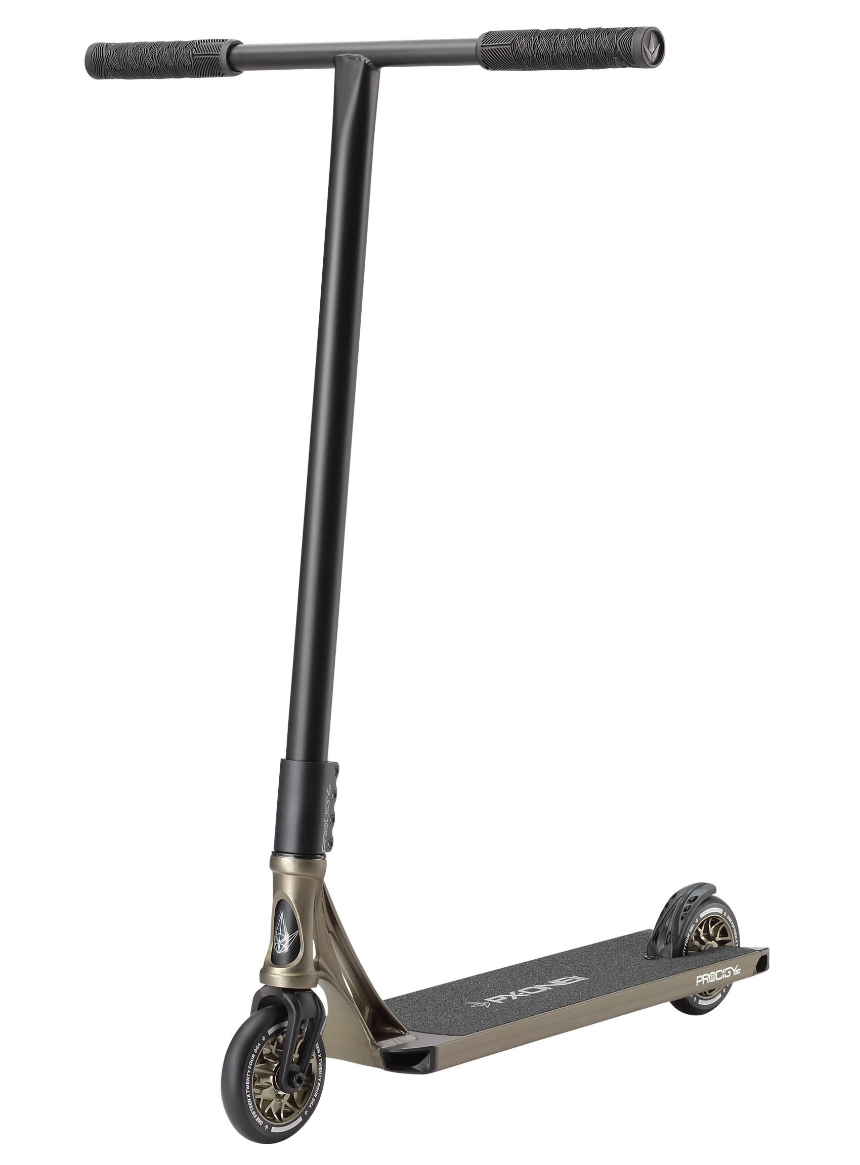 This X One version of the Blunt Street Prodigy has kept many of the parts from the X edition but has refined everything. The deck is still 5.5in wide x 21in long but now been reinforced around the neck and has the updated boxed ends from the AOSv6 pro decks. The wheels are all new with 115mm size using the core of the 110mm to give a thicker tyre to smooth out the rough surfaces. The grips are all new with the TPR V3 durable grips and the fork is the Declare V2 with new bolt axle.