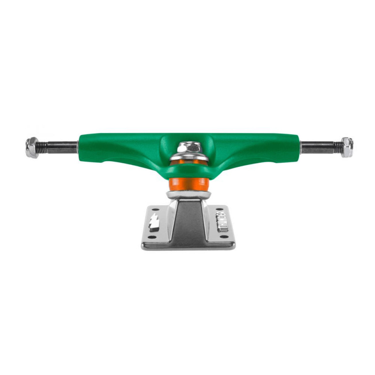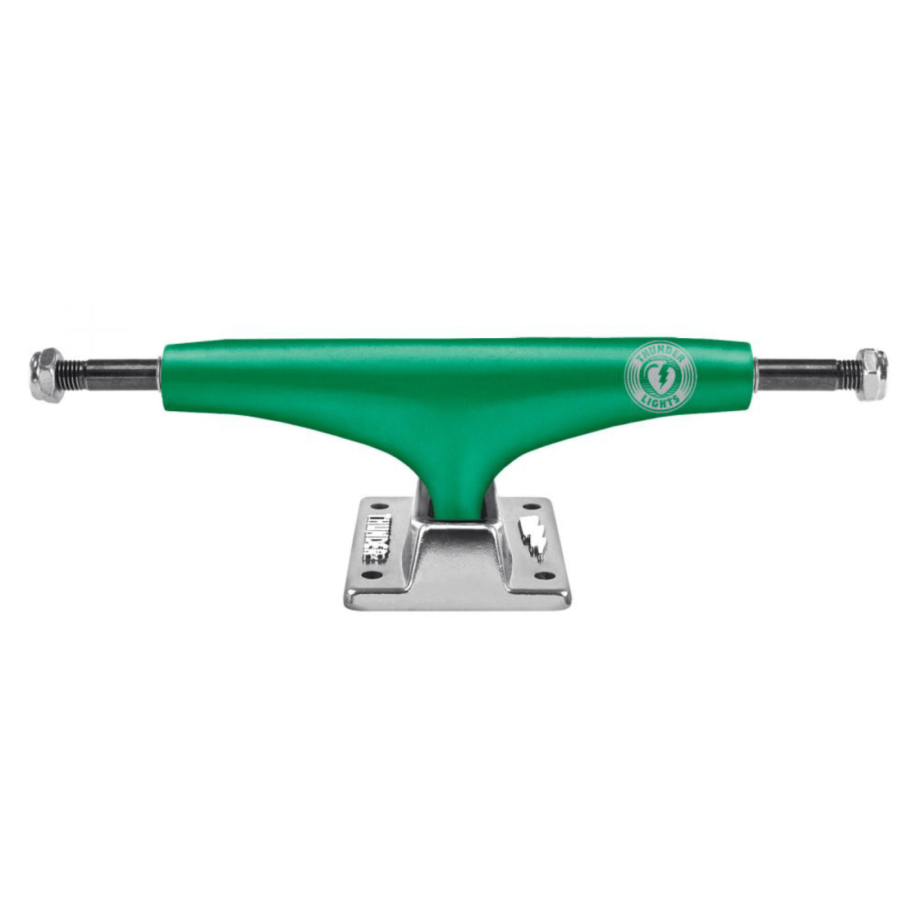 Thunder trucks are renowned for high quality trucks , with their construction methods being second to none. Theses trucks are stunning to look with the green hanger and polished base plate. The strength of the trucks come from the forged baseplate which has been hollowed out for weight reduction and with the hollow kingpin theses trucks come in at 347 grams each.