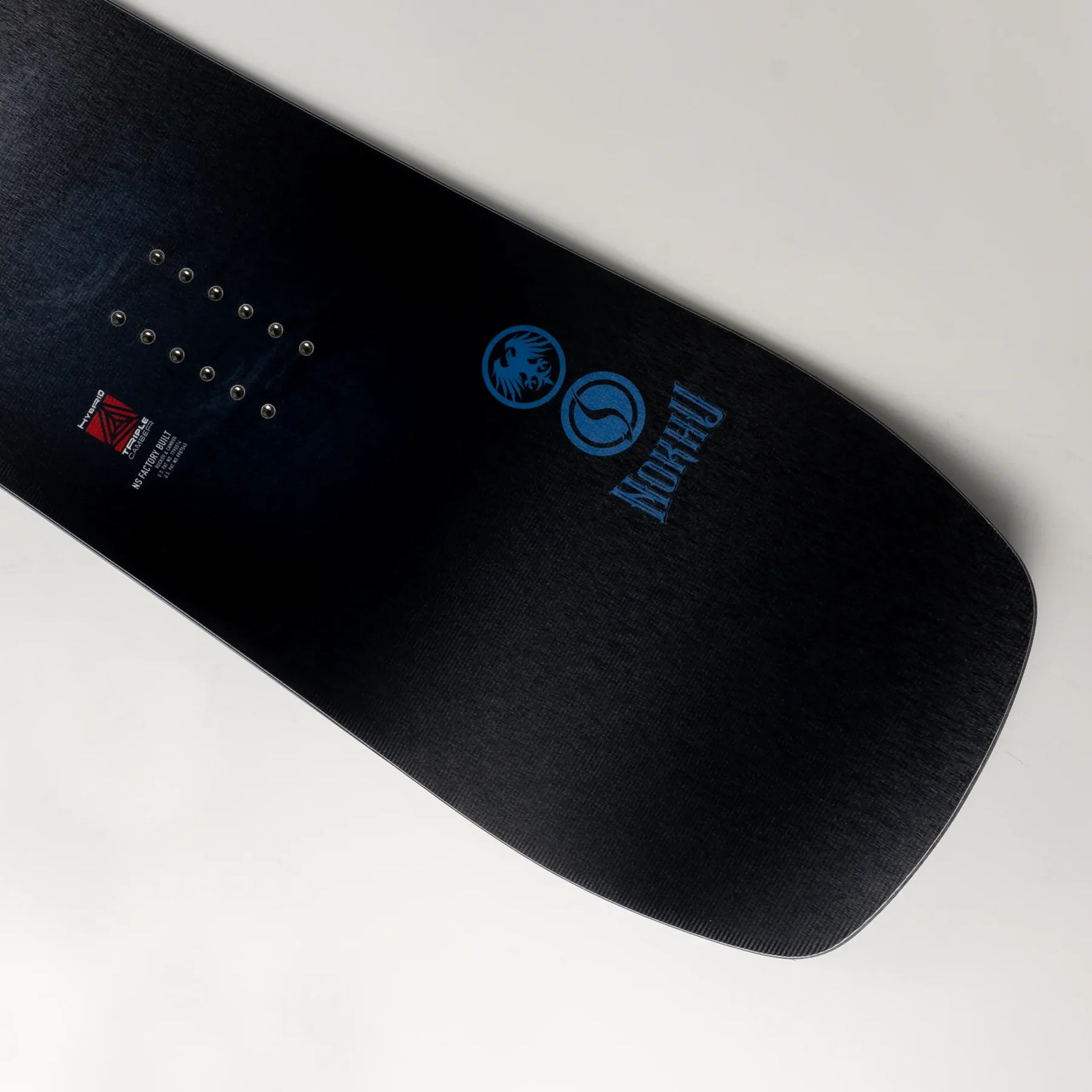 The Never Summer Nokhu brings the versatility and edge hold of the Tripe Camber into the Shaper line with a volume shifting board with 13mm of taper. The medium flex pattern is surprisingly stable when going fast and the grip of the Triple Camber along with the surfy feel of this board make it super versatile. This board has a shorter running length and wider design so you do size down a bit, check out the size chart at the bottom of the page to find your ideal board. Obviously being a Never Summer then the build quality and materials are second to none with super fast and durable base and a full carbon and damping layup making the ride superb.