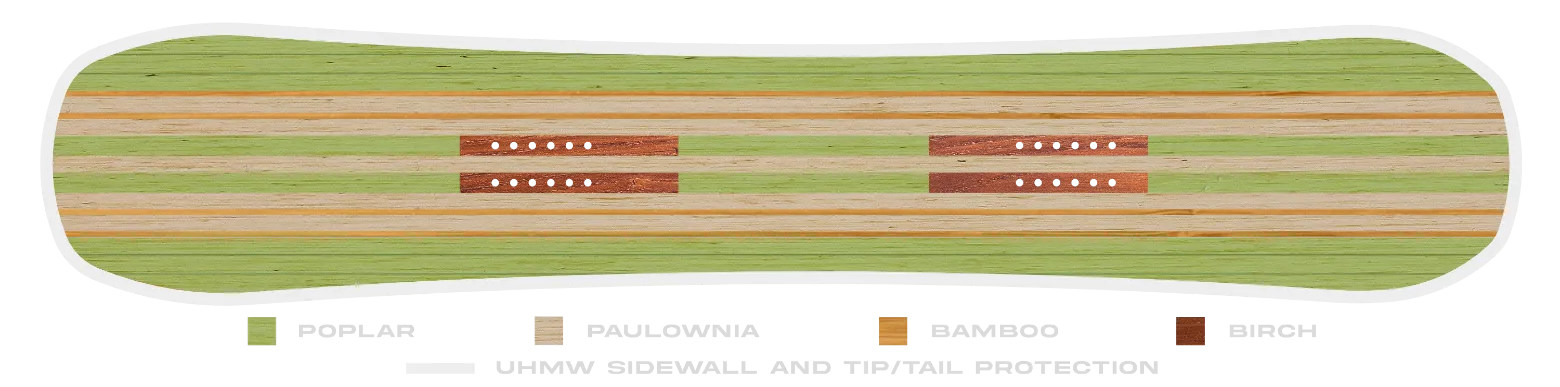 With free ride more specifically in mind, the Proto FR features a directional shape with a slightly set back stance to offer more float on the nose. With a more aggressive flex rating of 8/10 this is by no means an outright beginners board; inside the Proto FR Never Summer have really gone in on the technology to bring this beast to life. Featuring Elastomeric carbon, Bi-lite fibreglass and STS-pre tensioned fibreglass to reduce vibrations, enhance torsional response and really emphasise on the level of pop and control over this board you have, this might just be one of the most technical boards ever made- but it doesn't stop there. Never Summer's WooBoo core uses a combination of wood and bamboo for a lighter weight, more snappy and durable core while a Durasurf XT Sintered 5501 base is one of the fastest bases we have ever tested here at ATBShop.
